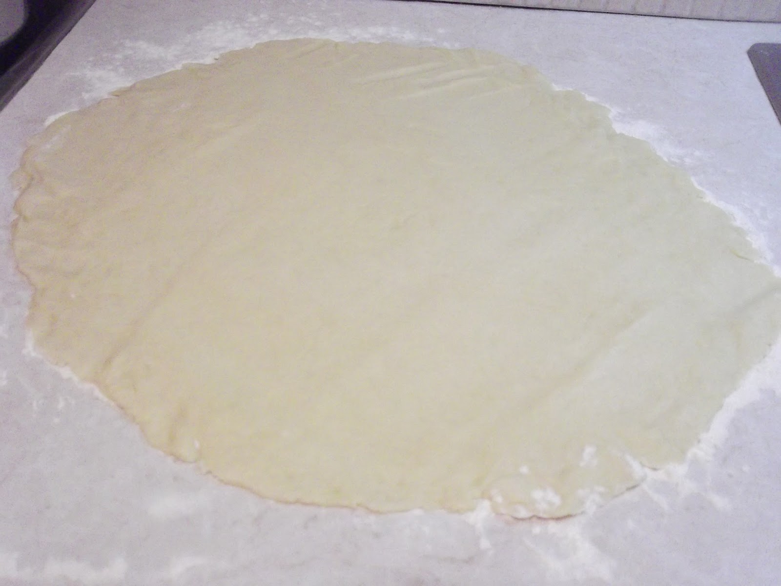 - Σε αλευρωμένη επιφάνεια ανοίγουμε το ζυμάρι μας με την βοήθεια ενος πλάστη σε κύκλο και με ένα μαχαίρι τον χωρίζουμε σε 8 κομμάτια