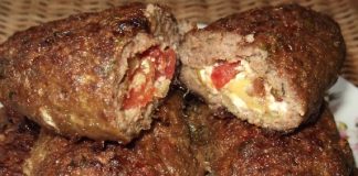 Μπιφτέκια γεμιστά με φέτα,πιπεριά και ντομάτα