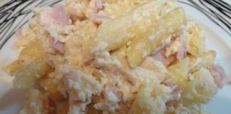 Σουφλέ με ζυμαρικά,κοτόπουλο και μπέικον