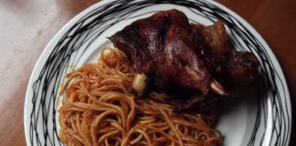 Αρνάκι κοκκινιστό με μακαρόνια στο φούρνο