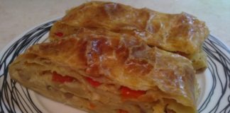 Στρούντελ με τυριά,μανιτάρια και πιπεριά Φλωρίνης