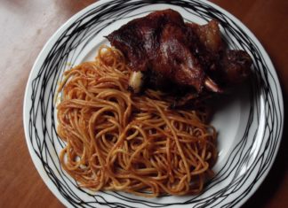 Αρνάκι κοκκινιστό με μακαρόνια στο φούρνο