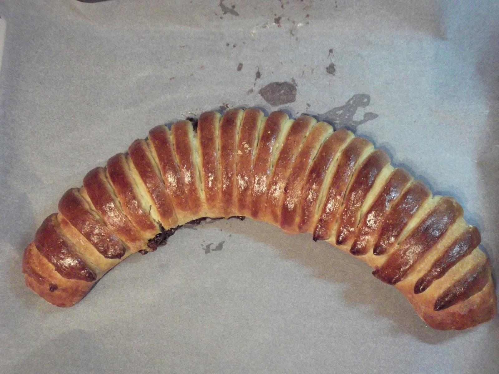 - Αφήνουμε να φουσκώσει αλλα 30 λεπτά,αλείφουμε με αυγό και ψήνουμε σε προθερμασμένο φούρνο στους 180 βαθμούς μέχρι να ροδίσει(περίπου 30 λεπτά)